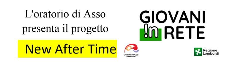 "New After Time" è la continuazione del progetto di sostegno allo studio per i ragazzi della scuola media ed elementare iniziato ormai tre anni fa. Il progetto è stato pensato dalla parrocchia san Giovanni Battista in Asso ed ha vinto per il quarto anno consecutivo un bando regionale della progettualità chiamata "Giovani IN Rete” grazie al quale verranno sostenute parte delle spese.